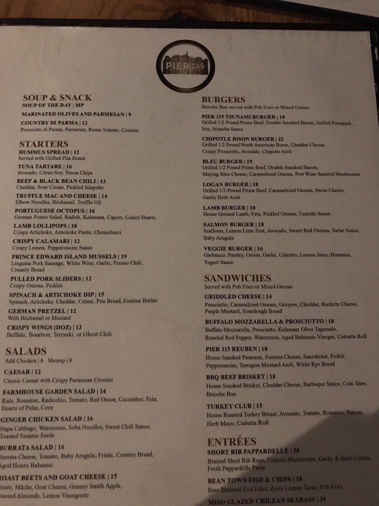 Pier 115 Menu
